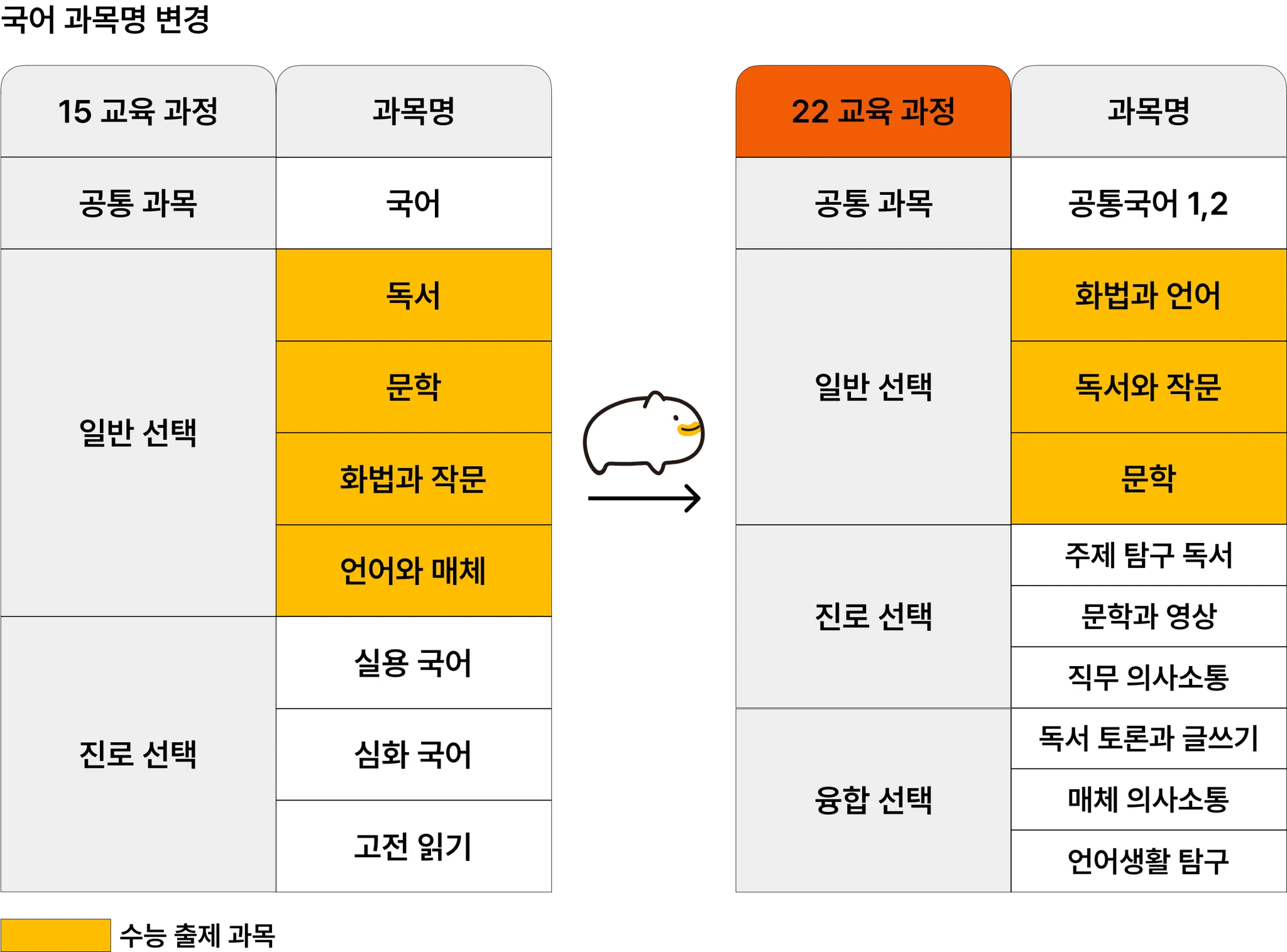 ‘국어’ → ‘공통 국어 1,2’로 과목명이 변경됩니다.