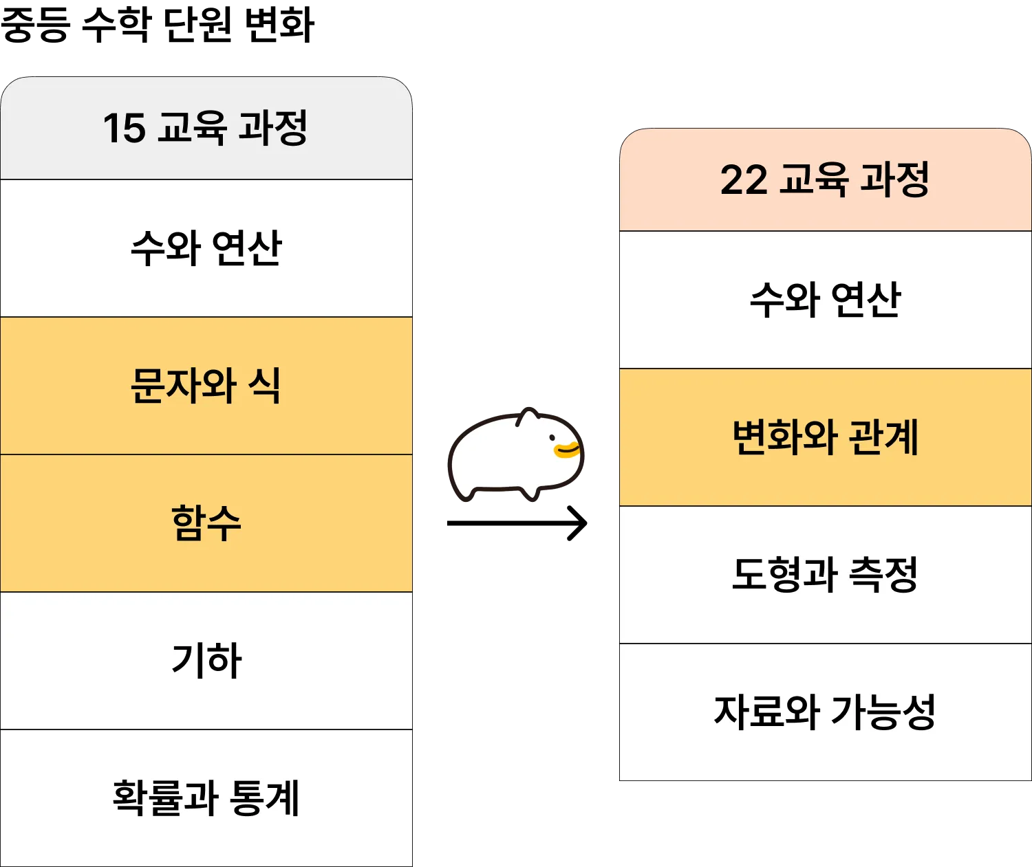 2015 교육 과정 5개 단원에서 2022 교육 과정 4개 단원으로 변경됩니다.