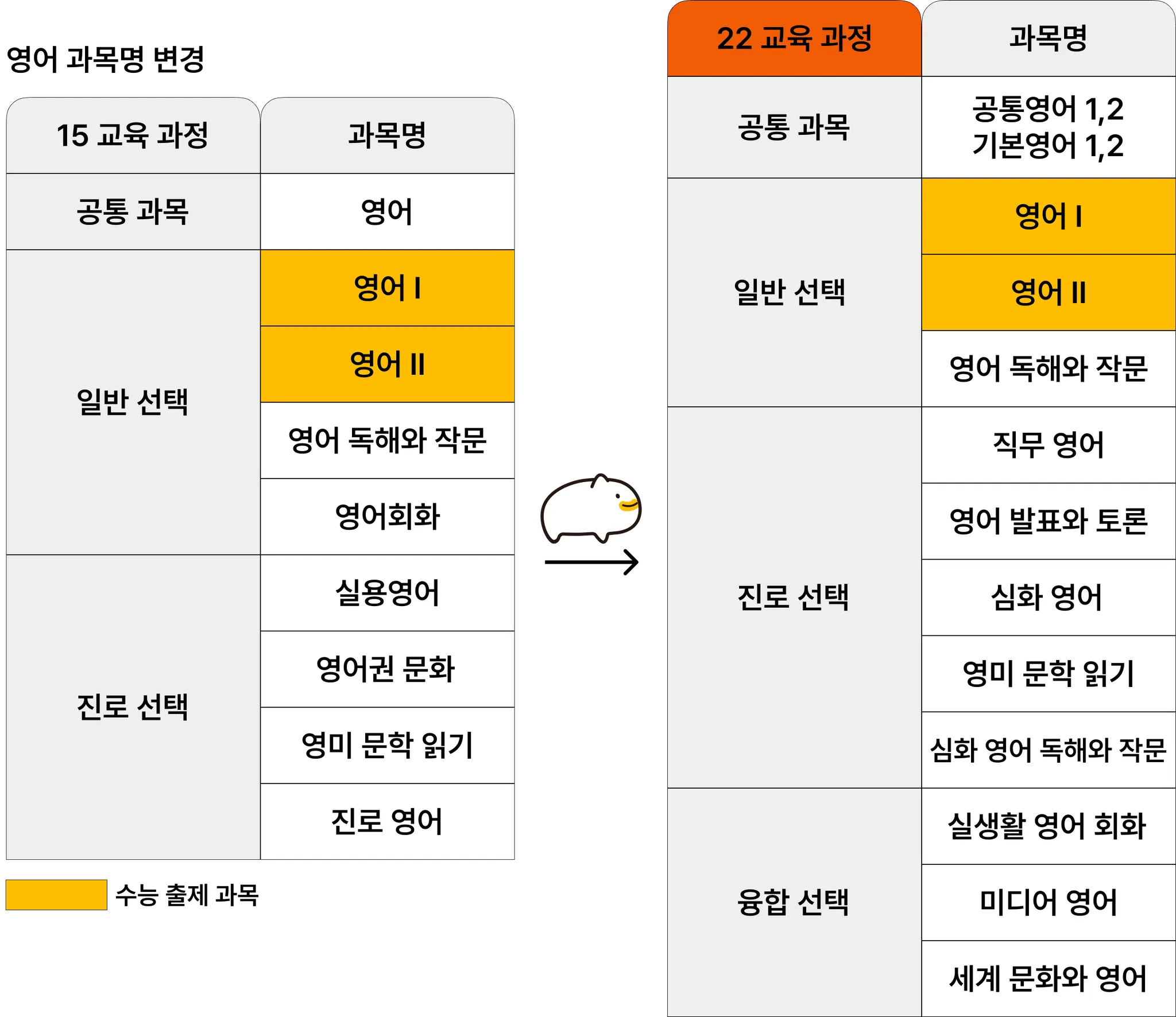 공통 과목명이 변경됩니다. (영어 → 공통영어 1,2)